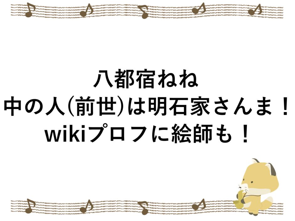なんて疑問をお持ちのアナタのために、八都宿ねねさんの中の人(前世)は明石家さんまさんで、wikiプロフに絵師も調査、まとめました。