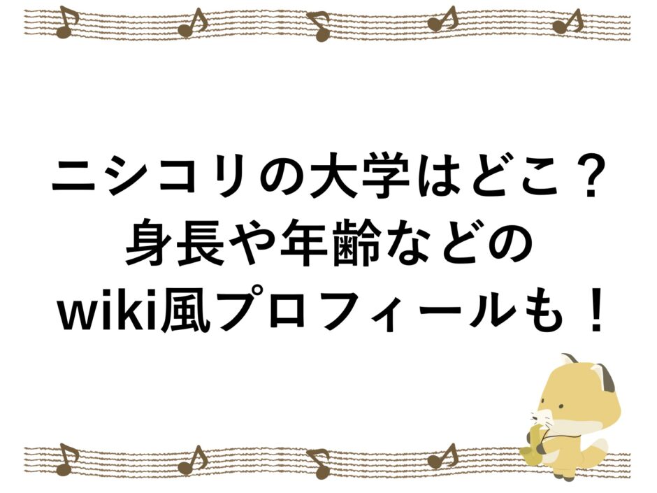 なんて疑問をお持ちのアナタのために、ニシコリの大学はどこなのか、身長や年齢などのwiki風プロフィールも調査、まとめました。