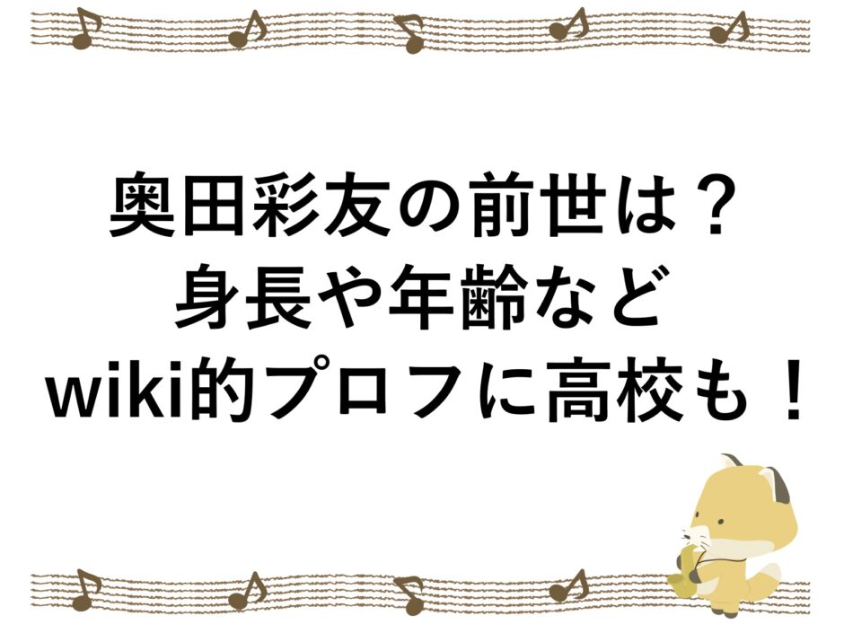 そんな疑問を持つアナタのために、奥田彩友さんの前世は?身長や年齢などwiki的プロフに高校も調査、まとめました。